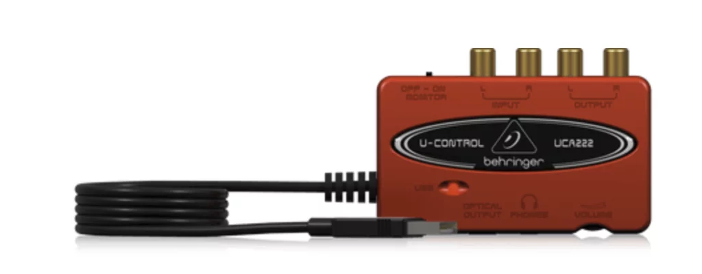There is nothing really special needed here. Pretty much any USB Audio gadget providing a line input will work. Btw, a microphone input and line input are not the same. You see in the picture above that also on the backpanel of the PC seperate inputs for each are provided. So lets not confuse line input with microphone input. There are plenty of options online available to purchase. If you just search on Google for “USB Audio” you will find plenty starting from $5. If you are keen to also get an audio quality upgrade from what your PC or Mac desktop provide I can recommend the Behringer UCA222. It sells below $50 and is a professional capture device for analog audio.