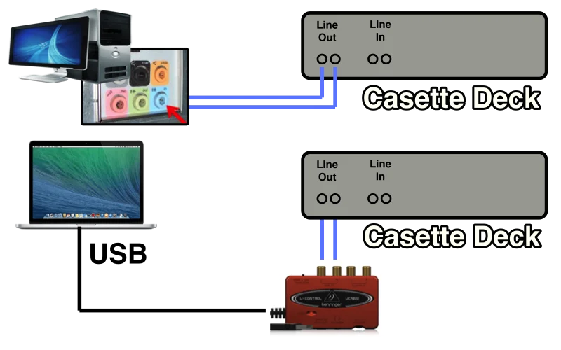 - USB Audio Device as Input (required if your Mac or PC does not have a Line Input)