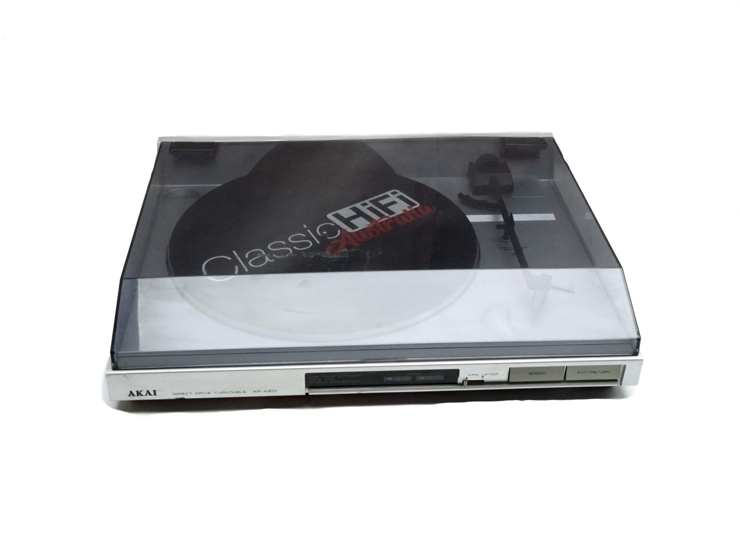 The AP-A201 is a good sounding direct drive turntable with auto return function. No belt in the unit that would ever age and very precise speed control.