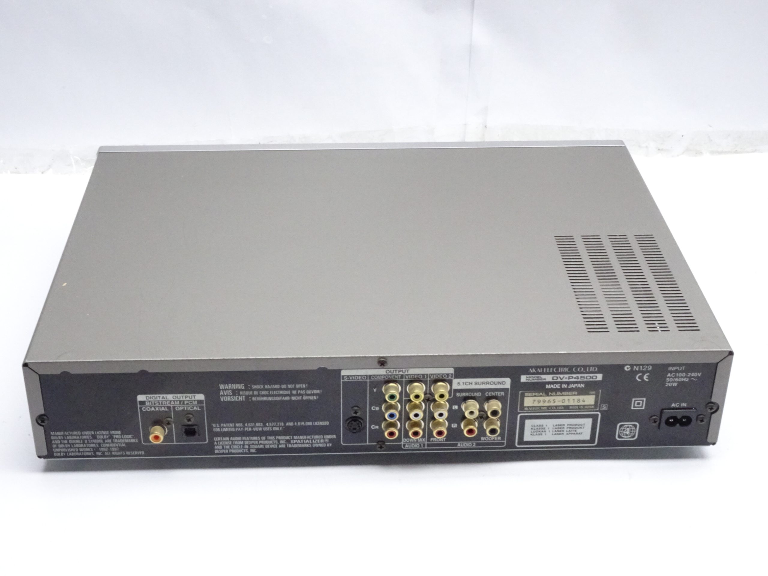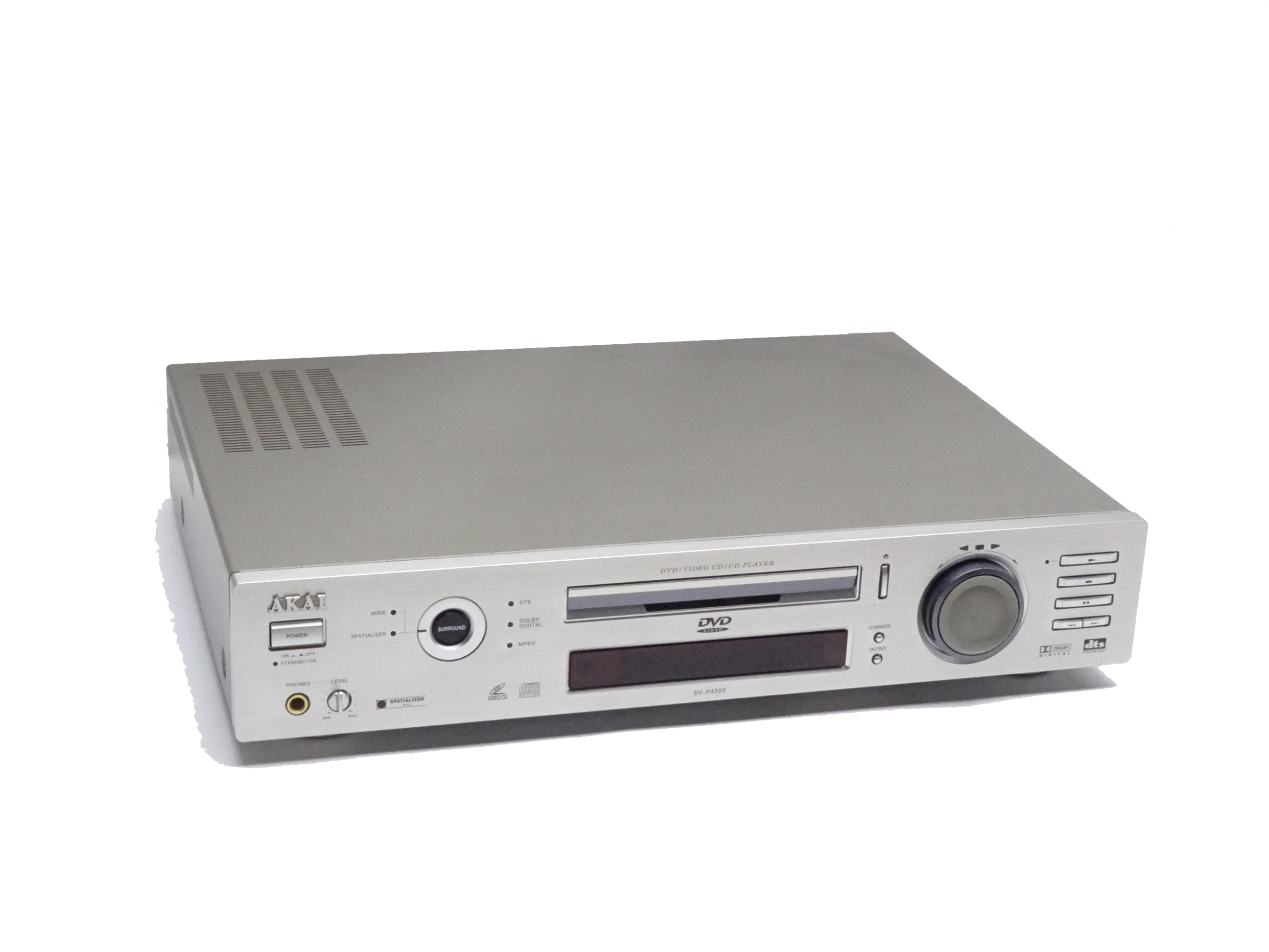 The AKAI DV-P4500 is a great sounding CD and DVD player with plenty of outputs. With its silver front it easily integrates into a 70ties stereo systen, maintaining the silver faced look for your whole stack.