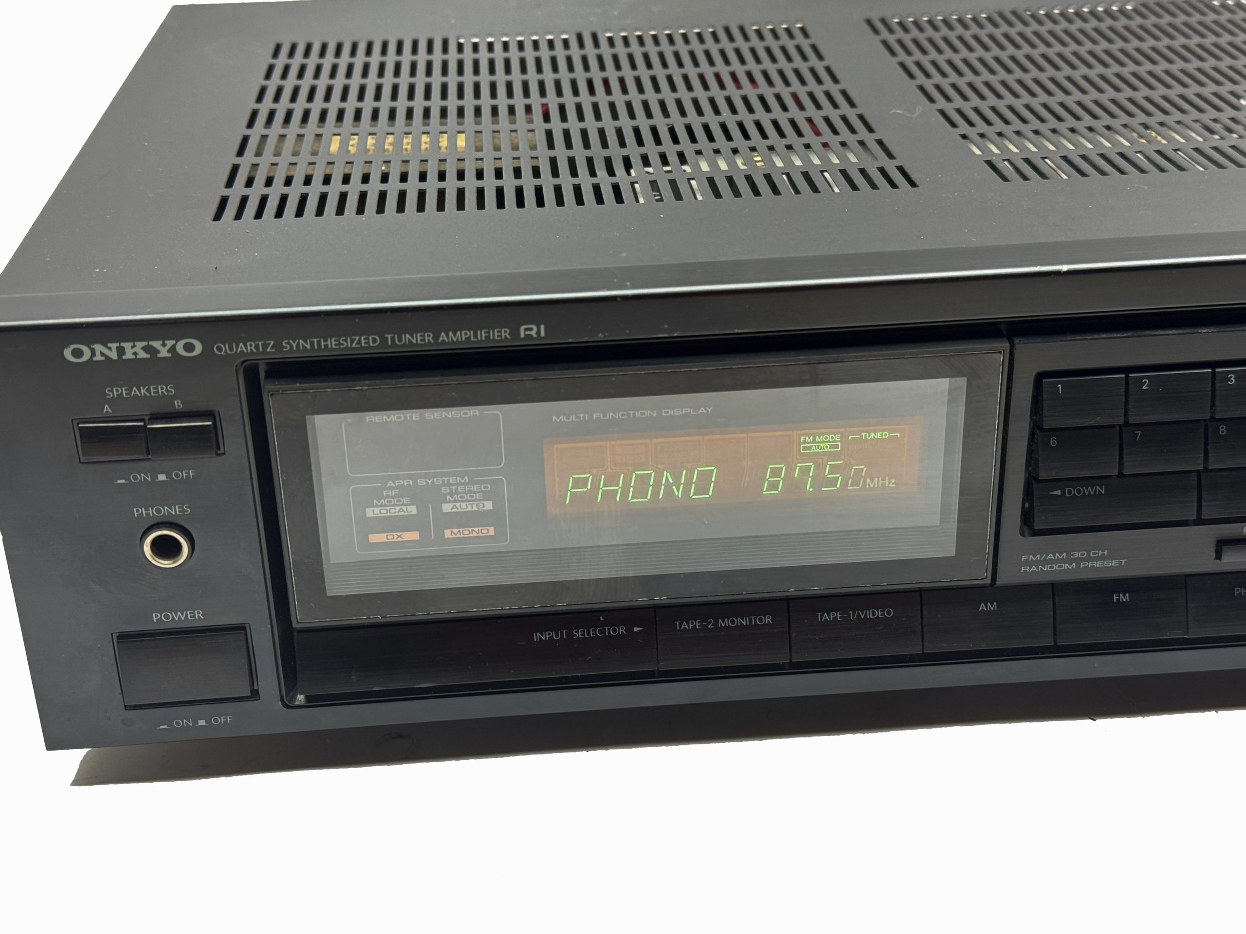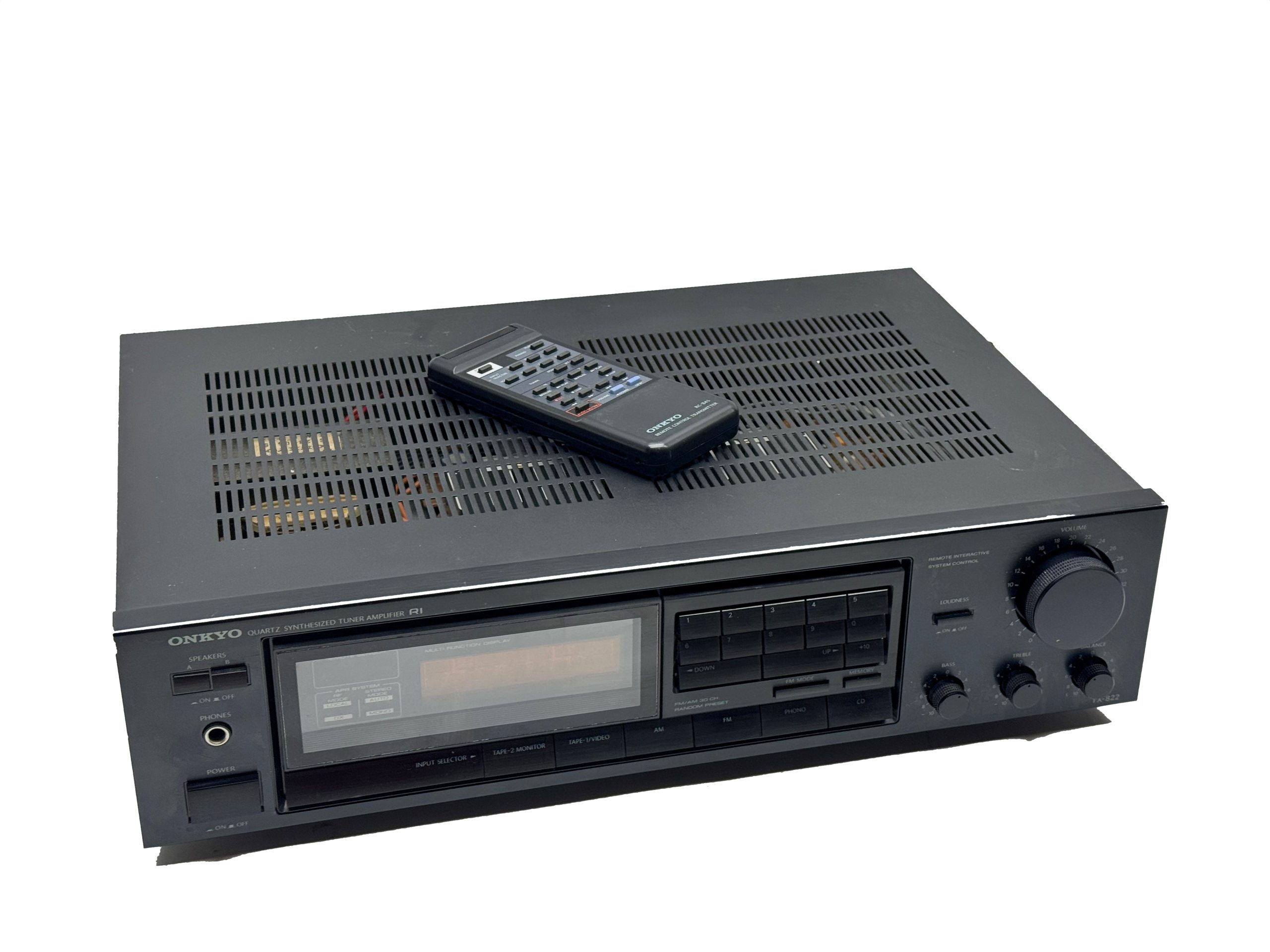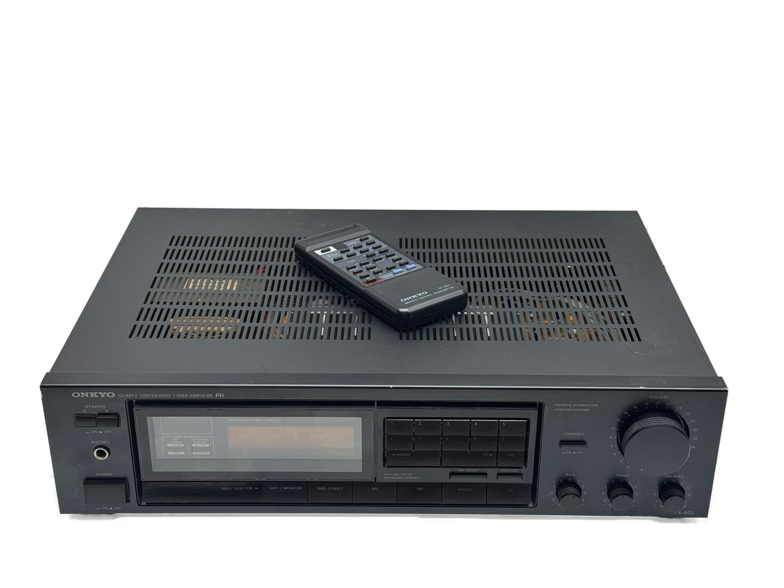 The TX-822 is an amplifier/receiver from the late 80ties. It comes with a variety of inputs – including a phono one for your vintage turntable. With its 80 watts of power it is capable of driving large floorstanding speakers, entertaining large rooms. These Onkyo’s out of this time do sound really good and are well built.