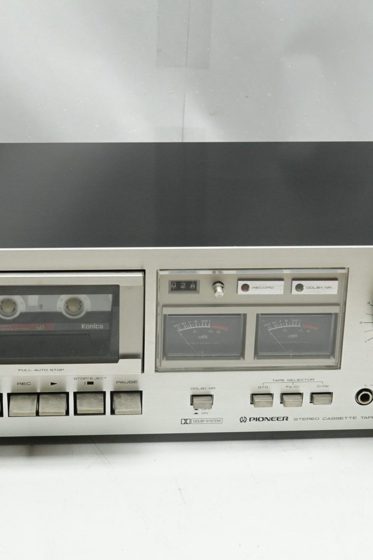 Beautiful Pioneer cassette deck from the late 70ties that sounds and look amazing. It comes with manual tape type selection, Dolby B noise reduction and two large backlit VU meters.
