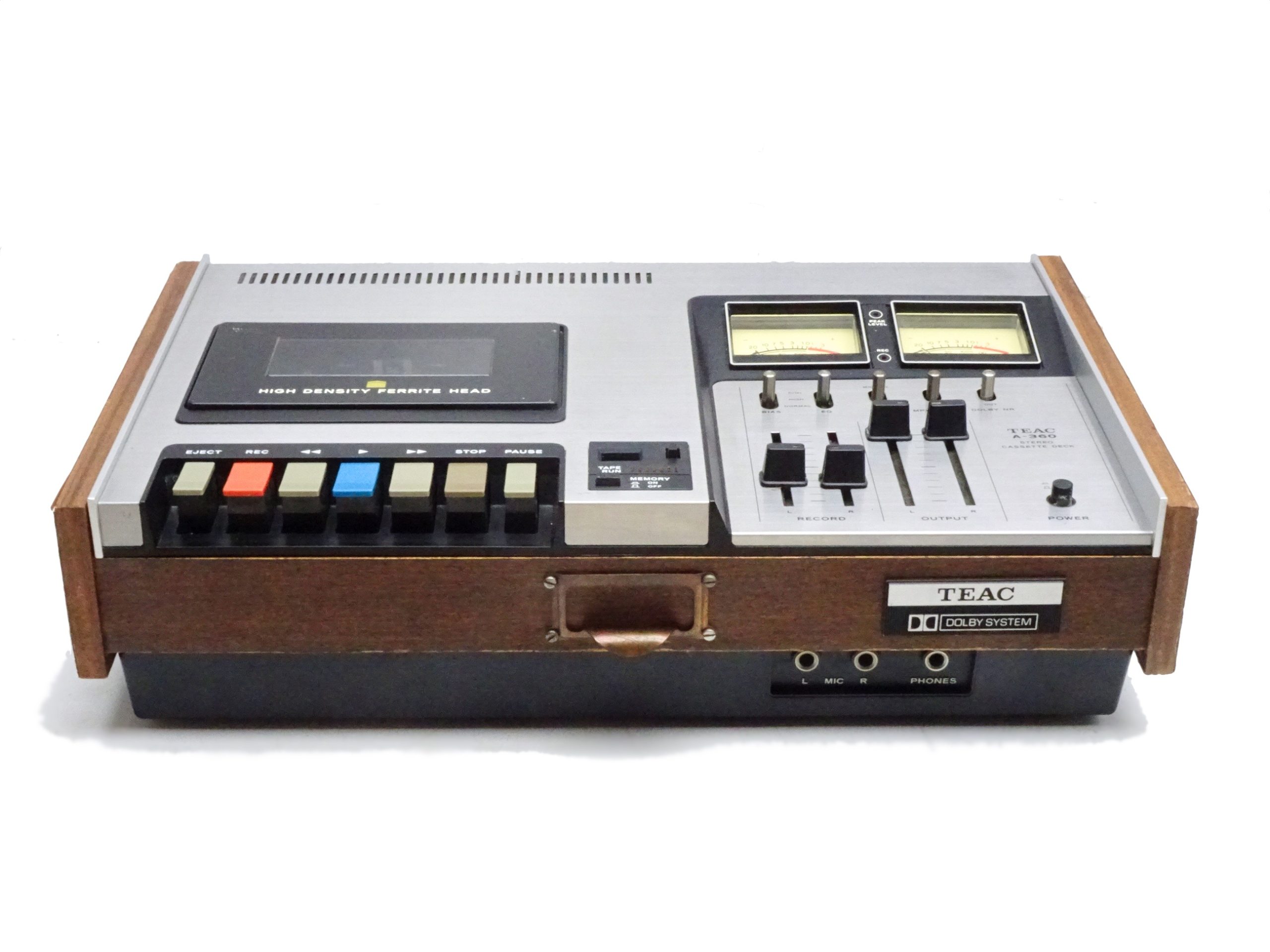 The A-360 is a rock solid deck from the early 70ties. The mechanics can’t be faulted, it is built like a tank. The top is actually made out of stainless steel, while the device itself is in a beautiful timber case. The large backlit VU meters and adjustment for output and recording level make it ideal for professional use. The overall performance is impressive. It plays other decks of the time from Technics or Nakamicho against the wall.